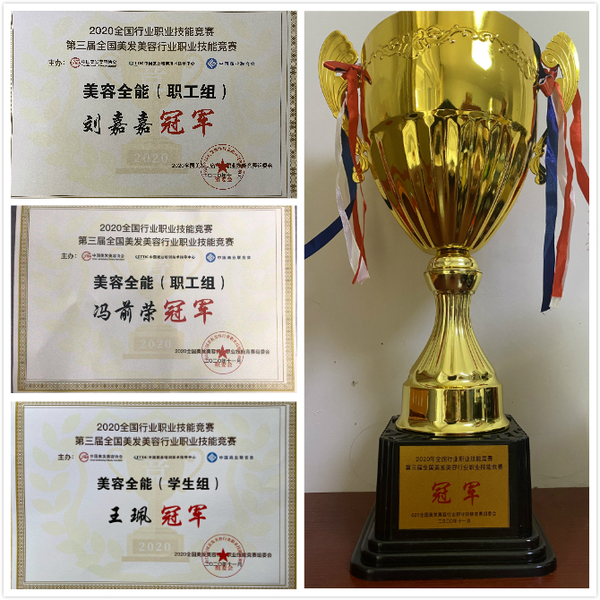 在本次竞赛中,我校人物形象设计专业教师刘嘉嘉、冯前荣在“美容全能职工组”中均获得金奖,并获得“全国技术能手”称号;人物形象设计专业学生王佩在“美容全能学生组”中获得金奖;人物形象设计专业带头人陈霜露老师获得“优秀裁判员”称号。