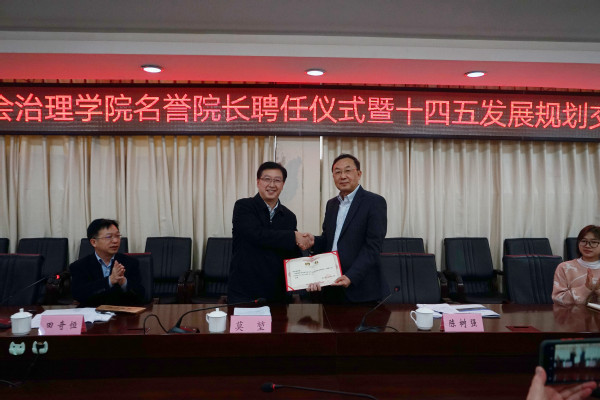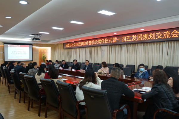 11月5日,民政与社会治理学院在办公楼第二会议室举行名誉院长聘任仪式暨十四五发展规划交流会,学校副校长莫堃、中国青年政治学院社会学系主任陈树强、民政与社会治理学院院长田奇恒、民政与社会治理学院党总支书记陶军屹及部分教师代表参加会议。会议由民政与社会治理学院院长田奇恒主持。