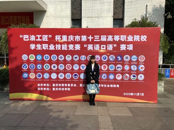 11月7日,2020年“巴渝工匠”杯重庆市第十三届高等职业院校学生职业技能竞赛“英语口语”赛项圆满落幕。比赛由重庆市教育委员会、重庆市人力资源和社会保障局主办,重庆科技学院承办,来自全市共39所高职学校及22 所本科院校的 64位选手参赛。