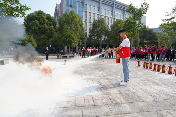 活动第二阶段在学校花溪湖广场进行,安全技术与管理专业教师李强进行了现场讲解。他强调,消防安全的关键在于做到“四懂”“四会”以及通信要害管理的“六防”。接着,在学校大正物业工作人员的指导下,开展了灭火器操作演练,场观众热情高涨,积极踊跃参与其中,将本次活动推向高潮。