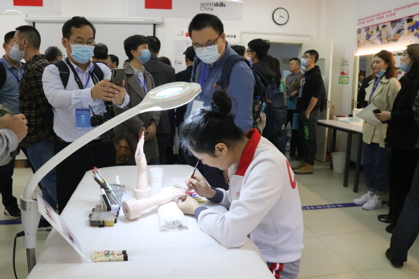 随后,与会老师参观了世界技能大赛美容项目国家训练基地,观摩了基地选手现场实作,并进行探讨和交流。大家对我校世界技能大赛训练基地及取得的成果给予了充分肯定和高度评价,并表示将进一步加强交流学习。