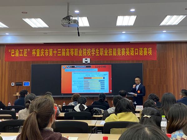11月7日,2020年“巴渝工匠”杯重庆市第十三届高等职业院校学生职业技能竞赛“英语口语”赛项圆满落幕。比赛由重庆市教育委员会、重庆市人力资源和社会保障局主办,重庆科技学院承办,来自全市共39所高职学校及22所本科院校的64位选手参赛。