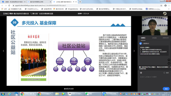 本次培训结合当前社区“基层党建”“三社联动”“疫情防控”“社区治理”等重点服务工作,邀请川渝两地民政局相关领导做地方经验讲解,邀请知名高校学术功底深厚的专家教授聚焦多地社区治理实践案例进行讲解,共设置直播10门专题课程,在培训方式上注重政策解读、实务指导和互动交流等,增强了培训的针对性和时效性,受到了学员的一致好评。
