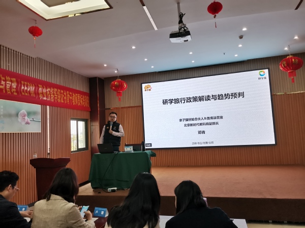 本次培训是我校与亲子猫(北京)国际教育科技有限公司第一次合作,双方围绕培训目的对培训课程设计进行充分沟通,设置了《研学旅行政策解读与趋势预判》《研学旅行策划与管理(EEPM)证书总体设计与方案介绍》《安全落实》《实施引导与服务管理》,理论联系实际,获得了学员的好评。