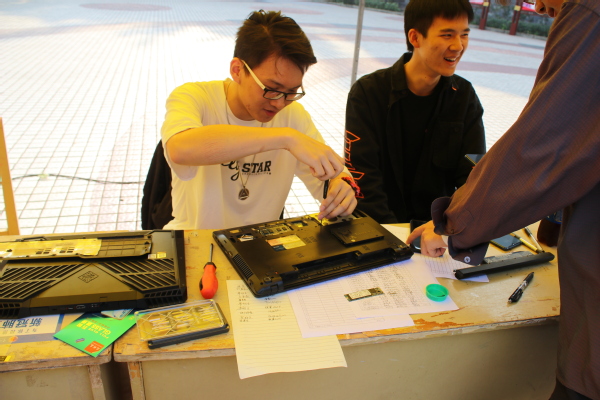 11月10日、17日,智能工程学院、大数据与信息产业学院联合在学生处前小广场开展了以“智享生活 数码维护”为主题的劳动实践日专业服务活动。