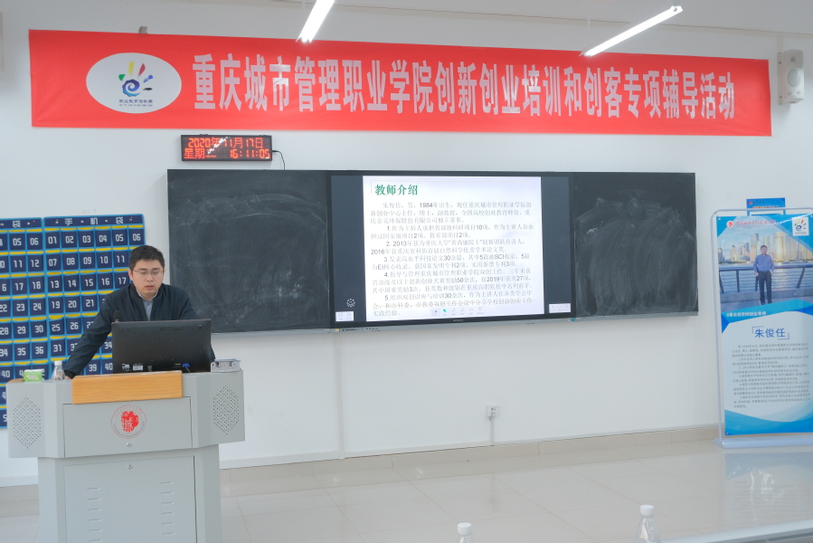 我校创新创业中心主任朱俊任博士围绕创新创业与“双创”竞赛,就创新创业项目写作展开了详细的讲解,强调了项目写作中要重视审题,结构清晰,逻辑顺畅,而且专利、获奖证书、合作协议、媒体报道、销售证明等支撑材料也是一个都不能少。