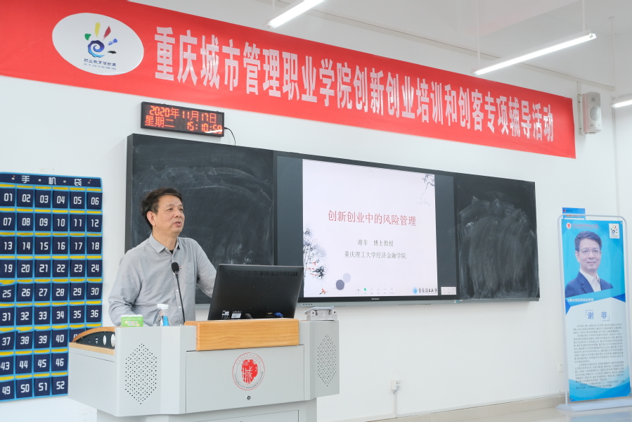 重庆理工大学经济金融学院院长谢非教授对创新创业中的风险管理展开讲述,阐明了什么是风险,强调了风险无处不在,并结合日常工作和生活中的案例,说明了创新创业中加强风险管理的重要性和常见的风险管理方法与技巧。