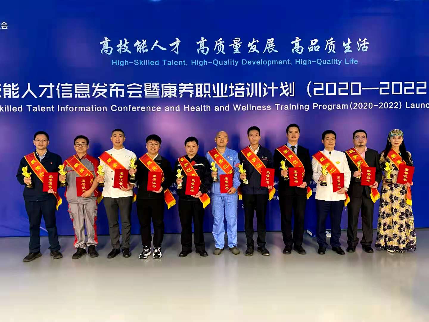 11月21日,由重庆市人民政府主办的重庆市2020英才大会“高技能人才信息发布会暨康养培训计划(2020—2022)启动式”,在中国(重庆)职业技能公共实训中心中央大厅举办。国家人力资源和社会保障部、重庆市委市政府、重庆市人力资源和社会保障局、市教委等相关领导以及中国工程院院士出席了会议,并为最美巴渝工匠、国家级技能大师工作室、国家高技能人才培训基地颁奖。