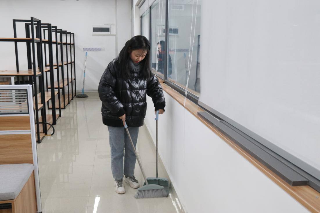 志愿者们还发扬不怕苦不怕累的服务精神,用扫把、拖把、抹布等工具对智慧康养学院行政办公室进行了全面的清洁卫生打扫,对办公室的绿植进行了浇水呵护。大家还在老师的指导下对办公桌文件以及资料柜进行了分类整理,为老师们提供了一个更加清洁有序的办公环境。