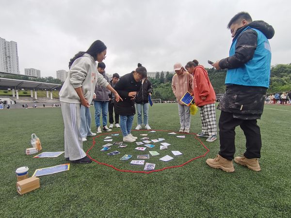 本次心理游园会共设有“挑战一击即中”、“掌上明珠”、“心理知识问答”、“不倒森林”、“极速60秒”五个活动挑战区。活动采用累积积分的方式进行,同学们在挑战区每完成一项主题活动就能获得相应积分,活动结束后评比总积分。大家在精彩纷呈的活动中感受到了别样的心灵体验,比如在“极速60秒”活动中,一名团队成员负责收集卡片,其他成员只能进行语言上的协助,而且必须在60秒以内完成挑战。为了完成任务,每一位成员都全身心投入到活动当中,发挥自己的智慧,感受团队成员间的相互沟通、配合而产生的强大能量,最终形成成员之间彼此信任、相互协助的良好氛围。