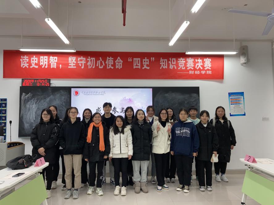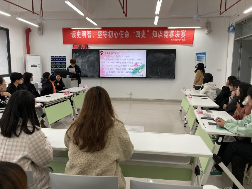 为深入贯彻落实习近平总书记关于学习“党史、新中国史、改革开放史、社会主义发展史”的重要指示精神,持续开展大学生爱国主义教育,11月25日,财经学院在致用楼C401举行以“读史明智 坚守初心使命”为主题的“四史”知识竞赛活动。