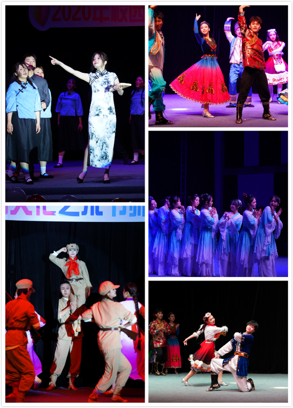 由7个二级学院师生组成的参赛队伍,为大家奉献了一场美轮美奂的视觉盛宴。《同心》、《无名的功勋》将我们的思绪带回到了全民抗疫的日子里,那些无名的平凡人用自己的平凡之躯为身后亿万中国人筑起防护的堡垒;天地英雄气,千秋尚凛然,《英雄赞歌》带我们穿过历史的硝烟,走进峥嵘的岁月,一起去找寻那些最可爱的人;《晨光曲》向我们展现了中国古典舞的身韵和柔美灵动的舞姿,一颦一笑,尽态极妍,书生意气,挥斥方遒;伴随着沉郁而富有节奏感的音乐,身着彝族服饰的舞者们向观众讲述了一个关于《守护》的悲壮故事,歌颂了红军与彝族人民血浓于水的深厚感情;渺小变得庞大,微弱变得强烈,《海的追寻》告诉我们,只要努力汲取力量,点滴之水终将汇集成海;岁月可流逝,历史永不忘,《苦难岁月》中血与泪,不断提醒我们勿忘国耻,吾辈当自强。