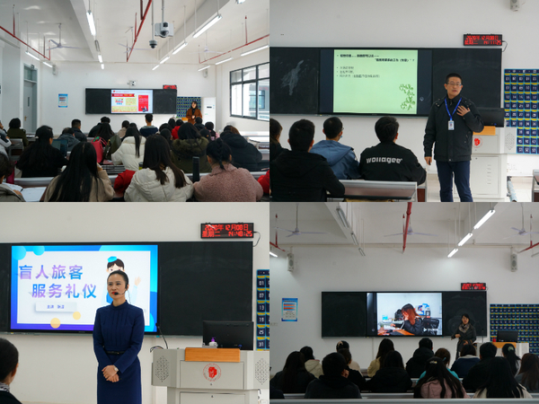 马克思主义学院胡可娜、民政与社会治理学院任俊圣、商学院段玉明三位老师率先开启示范授课,分别以精准扶贫、职业认同、工匠精神等为切入点,结合专业知识,循循善诱,步步深入,引导学生深入思考;通识教育学院何娇、文化与旅游学院张译、大数据与信息产业学院李菊芳三位老师随后登台,结合课程性质,以人物故事导入、职业情景模拟、历史事件评析等形式,展开了一堂厚重而生动、有颜又有料的精彩课堂。课程结束后,示范教师与观摩教师进行了现场互动交流,就课程思政的课前设计、课堂教学、课后评价等关键点进行了探讨。