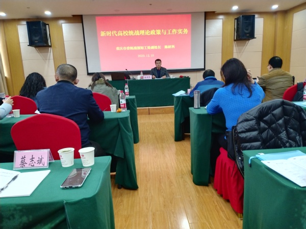 为进一步加强和改进我校统战工作,提升统战干部的能力和水平,12月10-11日,我校2020年统战干部培训班在重庆社会主义学院举行,学校各二级学院党总支、机关党总支、直属党支部书记、统战委员和党委统战部有关人员共计30人参加了培训。