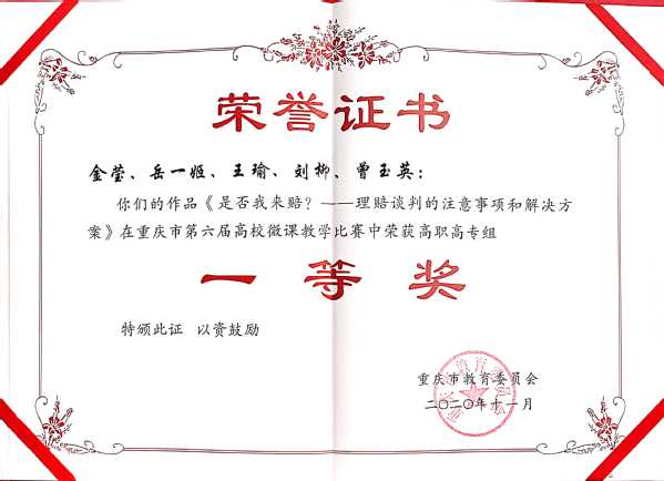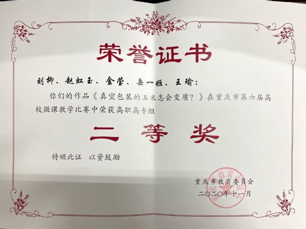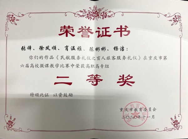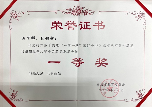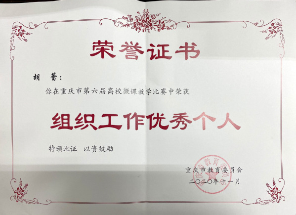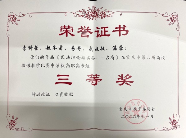 近日,我校教学工作再传佳音,5件微课作品在重庆市第六届高校微课教学比赛获得一等奖2个、二等奖2个、三等奖1个,优秀组织工作奖1个。