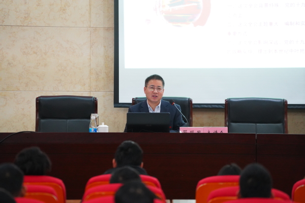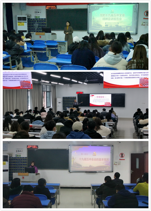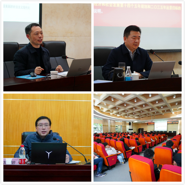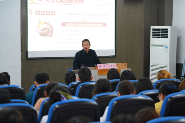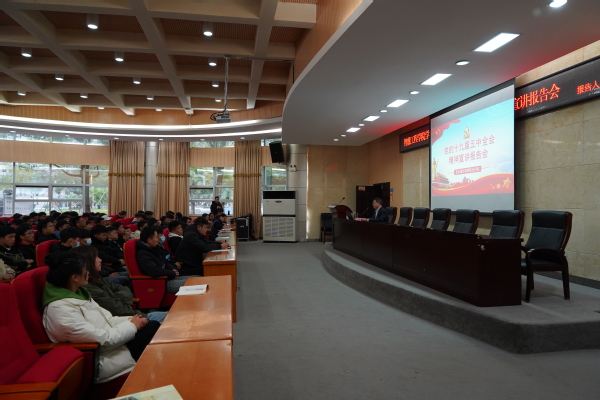 宣讲会上,学校党委书记任波从全会基本情况和重大意义,全面把握新发展阶段,准确领会2035年远景目标和“十四五”时期我国发展的指导方针、主要目标、重点任务,深刻认识构建新发展格局,坚持党的全面领导、动员各方面力量为实现“十四五”规划和2035年远景目标而团结奋斗等方面,对党的十九届五中全会精神进行全面宣讲和深入解读。党委副书记、校长邓明国结合时代特征深刻阐释了党的十九届五中全会召开的重要意义,重点解读了《中共中央关于制定国民经济和社会发展第十四个五年规划和二〇三五年远景目标的建议》以及重庆市委五届九次全会精神。鼓励学生干部要将个人发展梦想与国家民族前途深度融合,坚定理想信念,树立报国之志,为建设社会主义现代化国家努力奋斗。其他领导、教师也结合师生实际开展了精彩宣讲。