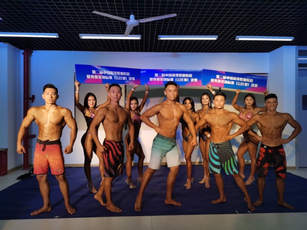 智慧康养学院社会体育专业运动员,于2019年4月开始组队,通过一年的训练和多次比赛的磨炼,建成了一只技术水平较高的健身健美队伍。2020年10月开始集训备赛,队员们分别经历了增肌、减脂、脱碳等环节,在力量训练、展示技术、精神压力等方面通过校内外专家教练的指导,达到了最好的竞技状态。在赛前拍摄筹备环节,学院全体教师集思广益,从拍摄效果、场地布局、形象设计等方面群策群力。视频直播当日,所有人员8点就到达参赛场地,教练、志愿者们开始场地布置和拍摄工作,健美队员们喷涂多层油彩后再化妆,所有准备活动紧锣密鼓地进行。中午一点比赛正式开始,全体运动员、教练、志愿者、灯光师、摄像师齐心协力,尽量保证每个队员发挥出自己最好的技术水平。