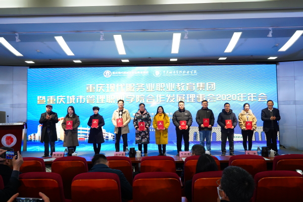 一元复始,万象更新。12月29日,重庆现代服务业职业教育集团2020年年会在我校隆重召开。重庆市教委副主任邓沁泉、重庆市高教学会首席专家、原执行会长张宗荫等出席会议,我校党委副书记、院长邓明国,副书记张新,副校长罗小秋,纪委书记杨寿康及集团各成员单位代表、学校部分职能部门的中层干部、二级学院党政负责人、教研室主任、专业带头人、校企合作专员等200余人参加会议。会议由学校副校长、集团秘书长莫堃主持。