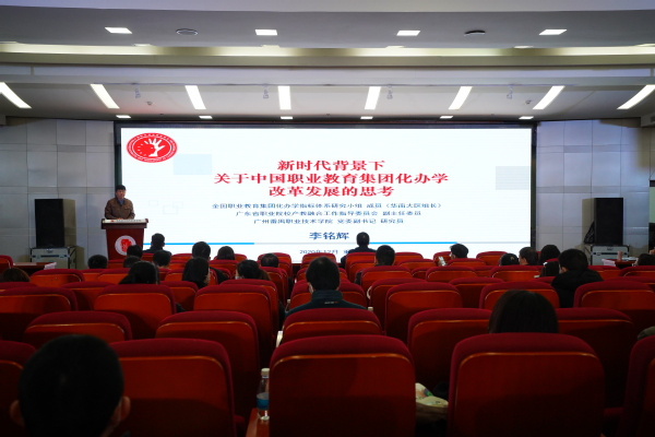 会议还邀请了广州番禺职业技术学院党委副书记李铭辉作题为《新时代背景下关于中国职业教育集团化办学改革发展的思考》专题报告。李铭辉书记从职业教育集团化办学基本情况、示范性职教集团遴选及推进教育集团化办学等三个方面深入浅出地阐述了集团化办学的意义、存在的主要问题、遴选示范性职教集团的原则与标准等丰富内容,提出了推进职业教育集团化办学的思考与建议。