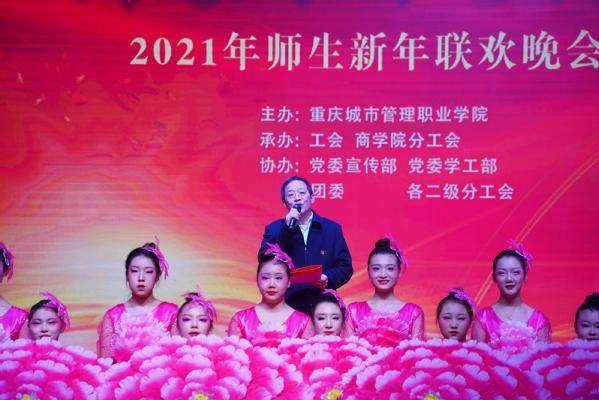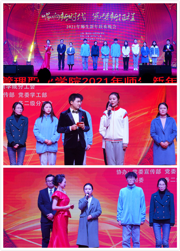 12月29日,我校“唱响新时代 筑梦新征程”2021年师生新年联欢晚会在学校小礼堂举行。晚会由学校主办,工会、商学院分工会承办,学校党委宣传网工部、党委学工部、团委以及各二级分工会协办。200名现场观众及2.3万多名场外观众观看了此次晚会。