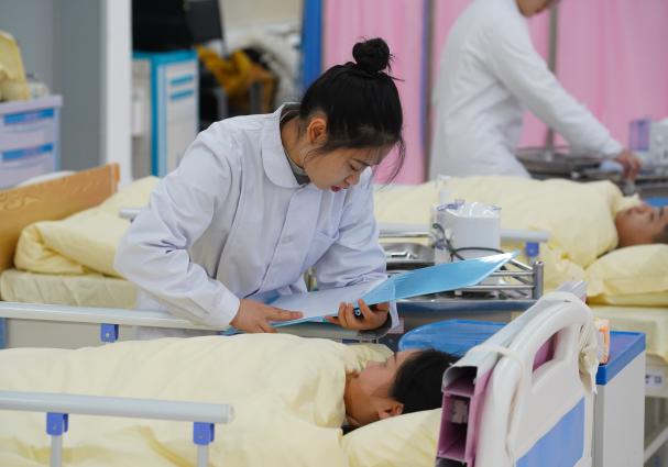 本次考试共有我校52名老年服务与管理专业学生报名参加,考核分为理论和实操两部分进行。12月30日开展的理论考核系统全面考查了学生的职业素养、理论知识及综合应用能力。12月31日开展的实操考核,借助临床真实情境案例、模拟病人、标准器材对考生的实践操作能力、思维判断能力、交流沟通能力及人文关怀素养等方面进行了综合考查。