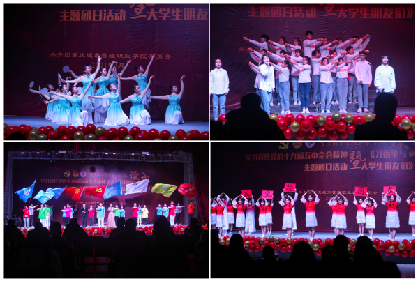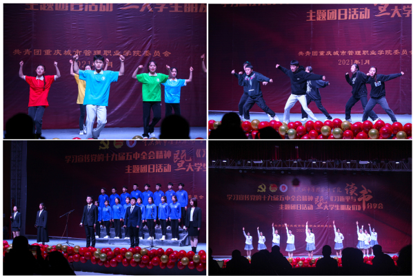 活动在舞蹈《我们都是追梦人》中拉开序幕。随后学校党委组织部部长付海涛向全体团学干部和青年学生表达了新年的问候和衷心的祝愿。活动分为“致青春”“致梦想”“致祖国”三个篇章,节目内容丰富,形式多样,为观众带来一场视听盛宴。其中,合唱《青春之歌》展现了大学生的青春活力,传递着新时代青年的奋斗精神;朗诵《钢铁》表达了对理想信念的执著追求;舞蹈《晨光曲》以曼妙清新的舞姿,诉说我们对生活不变的热爱和向往。舞蹈《青春,跃起来》节奏热情澎湃、表演青春洋溢;歌曲《骄傲的少年》通过悠扬的歌声来祝愿每一位城管学子都能实现梦想;原创歌曲《点亮窗台》讴歌了时代英雄最美抗疫者,歌颂了伟大的中国共产党;朗诵《一百年来的中国青年》勾勒了五四运动100年来,中国青年一代又一代接续奋斗、凯歌前行,谱写了一曲又一曲壮丽的青春之歌;舞蹈《Yes Ok》是对来年最好的期许和祝愿;朗诵《坚信》表达了信仰的坚强力量,鼓励青年们立志听党话、跟党走;手语操《国与青春》用饱含深情的舞蹈,表达了对祖国的深深爱念;歌曲《凤凰花开的路口》表明了用奋斗才能塑造成功,祝愿下个路口遇见更美好的自己;最后活动在《我和我的祖国》的歌声中结束。在此次活动中,智慧康养学院、民政与社会治理学院获得一等奖,文化与旅游学院、智能工程学院获得二等奖,商学院、财经学院以及大数据与信息产业学院获得三等奖。