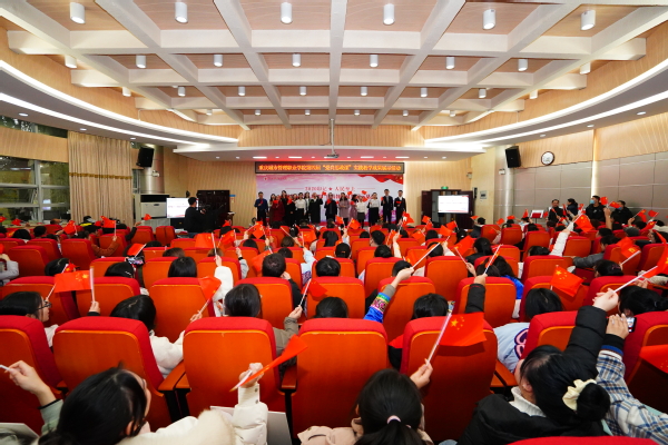 值得一提的是,“爱尚思政课”的经典环节——全体思政课教师合唱《我和我的祖国》。他们一起用优美的声音歌唱着:“我和我的祖国,一刻也不能分割……”全场师生用优美歌声表达对祖国、对教育事业的热爱,也将这份炽热感染到在场的每一个人。最后,展示活动在马克思主义学院副院长杨飏的课堂总结中结束。