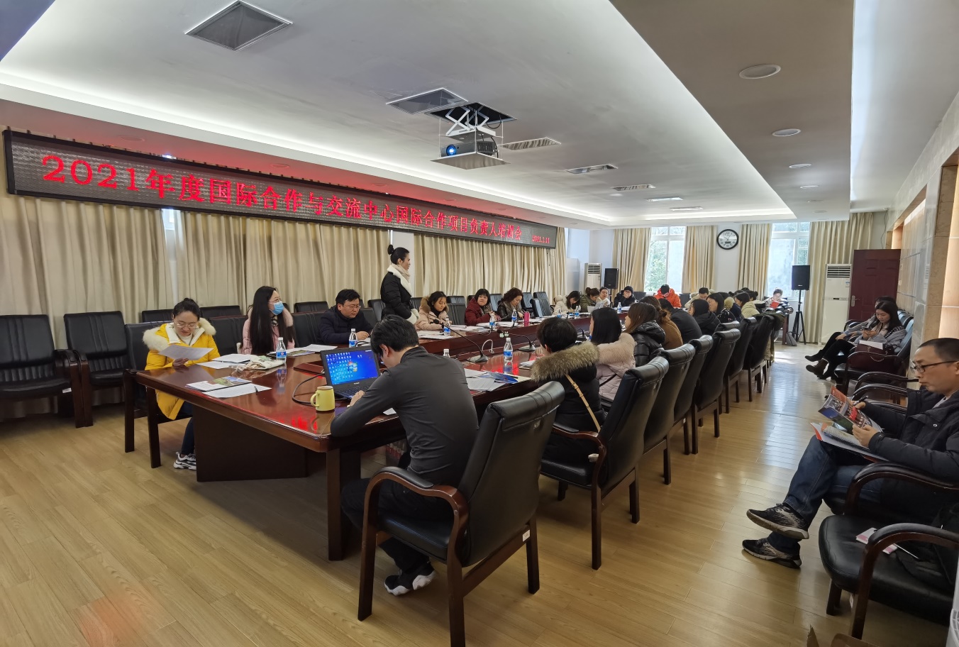 1月11日,国际合作与交流中心在办公楼第二会议室召开2021年度国际合作项目负责人培训会。国际合作与交流中心主任吕红、副主任邓春梅、相关工作人员及28名国际合作项目负责人参会,会议由邓春梅副主任主持。