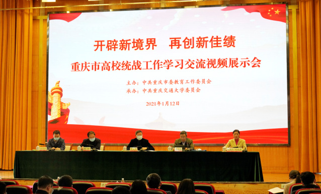 1月12日,由市委教育工委主办的全市高校统战工作“开辟新境界、再创新佳绩”学习交流视频展示会在重庆交通大学召开。市委统战部副部长、市政府文史馆党组书记李长明,市委教育工委专职副书记覃正杰,市委统战部、市委教育工委相关处室负责人及全市67所高校党委书记或分管统战工作领导、统战部部长近160余人参加了学习交流视频展示会。
