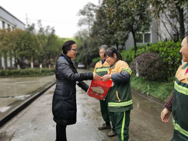 3月8日,在国际劳动妇女节到来之际,基建后勤处蒋家宁处长、徐芳副处长来到学生食堂、学生公寓、绿化单位工作现场慰问后勤外包单位女职工代表,并向他们送上节日的祝福和诚挚的问候。