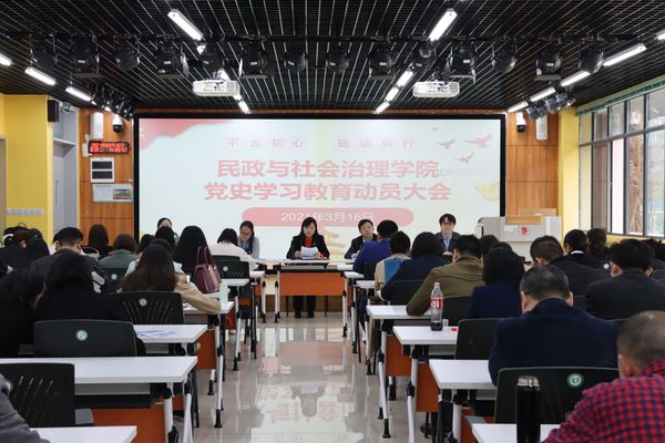 此次党史学习教育动员大会贯彻落实了习近平总书记重要讲话精神,提倡创新形式方法来抓好党史学习教育,大力营造学党史、悟思想、办实事、开新局的浓厚氛围,为民政与社会治理学院矢志不渝地推动党中央决策部署在高校贯彻落实贡献力量。
