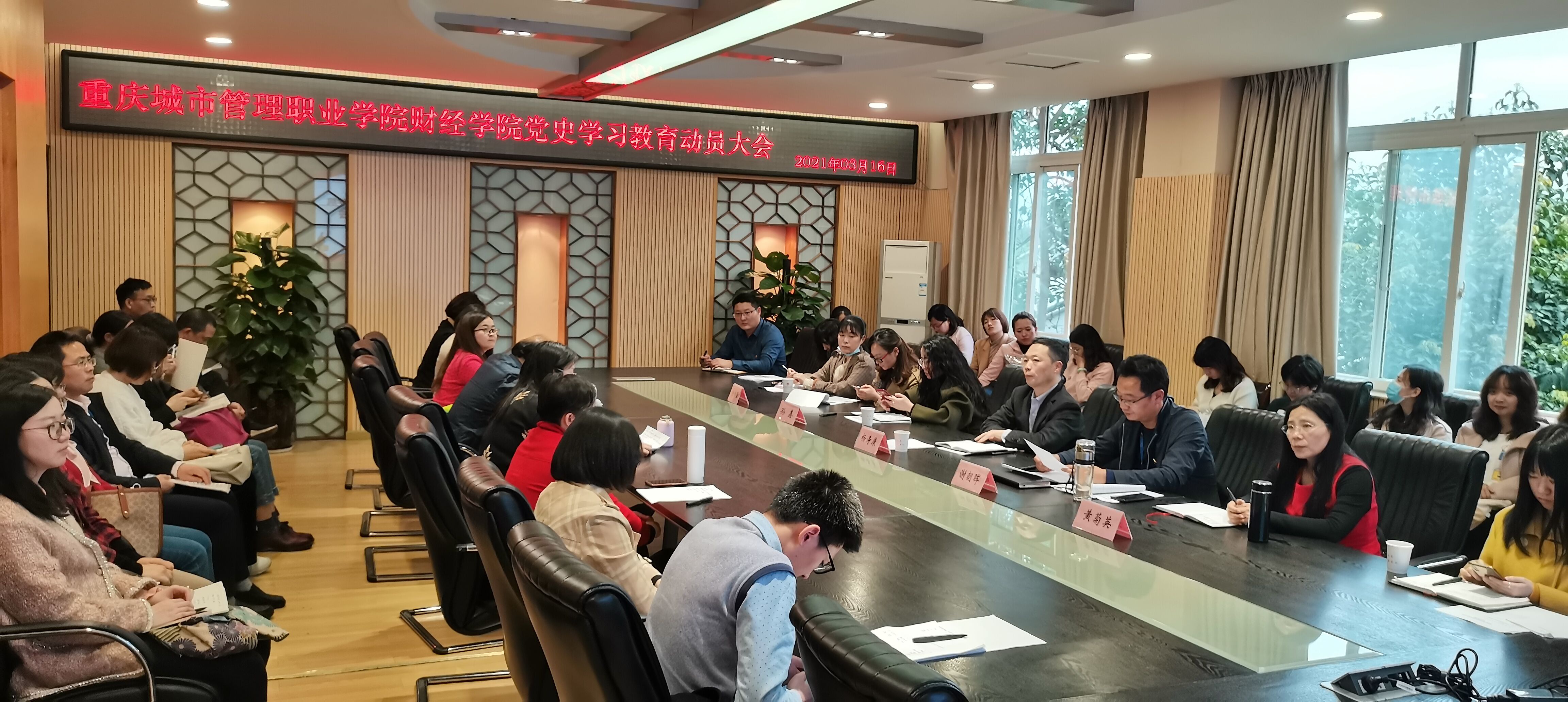 为深入学习贯彻习近平总书记在党史学习教育动员大会上的讲话精神,落实学校党委《关于在全校开展党史学习教育的实施方案》的工作部署,3月16日,财经学院党总支在办公楼第三会议室召开了党史学习教育动员大会。会议由学院党总支书记谢朝晖主持,学校纪委书记杨寿康和财经学院全体教师参加了会议。