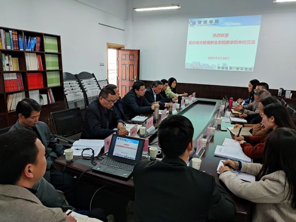 向从武院长首先介绍了长江师范学院的发展历程、管理学院的建设历程及取得成果,分享了专业建设、师资建设、学科建设以及工商管理类本科人才生态化培养模式构建的经验。唐良友书记代表学院党政班子向我校来访表示欢迎,希望双方通过沟通交流,共同推进高技能人才培养质量。蒋芹忠院长介绍了我校商学院办学情况,物流管理专业目前师资情况,以及物流工程本科班的运行情况,希望双方加强交流合作,共同提高职教本科质量。