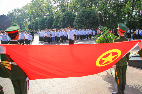 活动在雄壮有力的国歌声拉开了序幕。随后,全体师生在哀乐声中向在革命建设事业中献身的烈士默哀,并依次敬献鲜花,表达对英雄先烈的缅怀和崇敬之情。随后,团员代表余金鑫进行了题为《红岩精神,永放光芒》团旗下的演讲;优秀团员代表姜金余带领新老团员重温入团誓词。