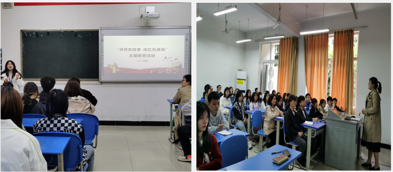 为庆祝中国共产党成立100周年,深入学习贯彻落实习近平总书记关于学习党史、新中国史、改革开放史、社会主义发展史的重要讲话和指示精神,引导广大团员青年厚植爱党、爱国、爱社会主义的情感,让红色教育、革命薪火代代传承,4月1日,马克思主义学院、财经学院在敏学楼B211联合开展“讲党史故事,传红色基因”主题教育活动。