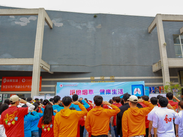 活动现场,来自各二级学院的学生骨干进行了集体宣誓仪式,并向同学们发放禁烟倡议书,邀请同学们在倡议签名墙上签名,主动做无烟校园的践行者、做新时代文明大学生。