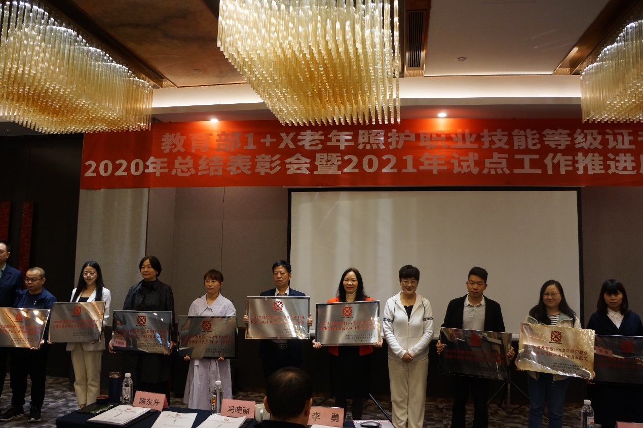 会议对西南片区2020年教育部1+X老年照护职业技能等级证书试点工作进行了总结,表彰了优秀试点学校。我校自2019年成功获批试点院校和考评点后,积极推进试点工作,圆满完成了2020年度培训与考评工作,受表彰为突出贡献奖。