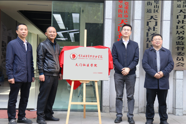 4月12日,我校与璧泉街道办事处合作共建的天门社区学院揭牌仪式在天门社区党群服务中心举行。我校智慧康养学院党总支书记郑兵、产教融合中心主任江柯,璧泉街道副主任卢义、天门社区党委书记严勇,我校师生代表和天门社区群众代表30余人参加揭牌仪式。
