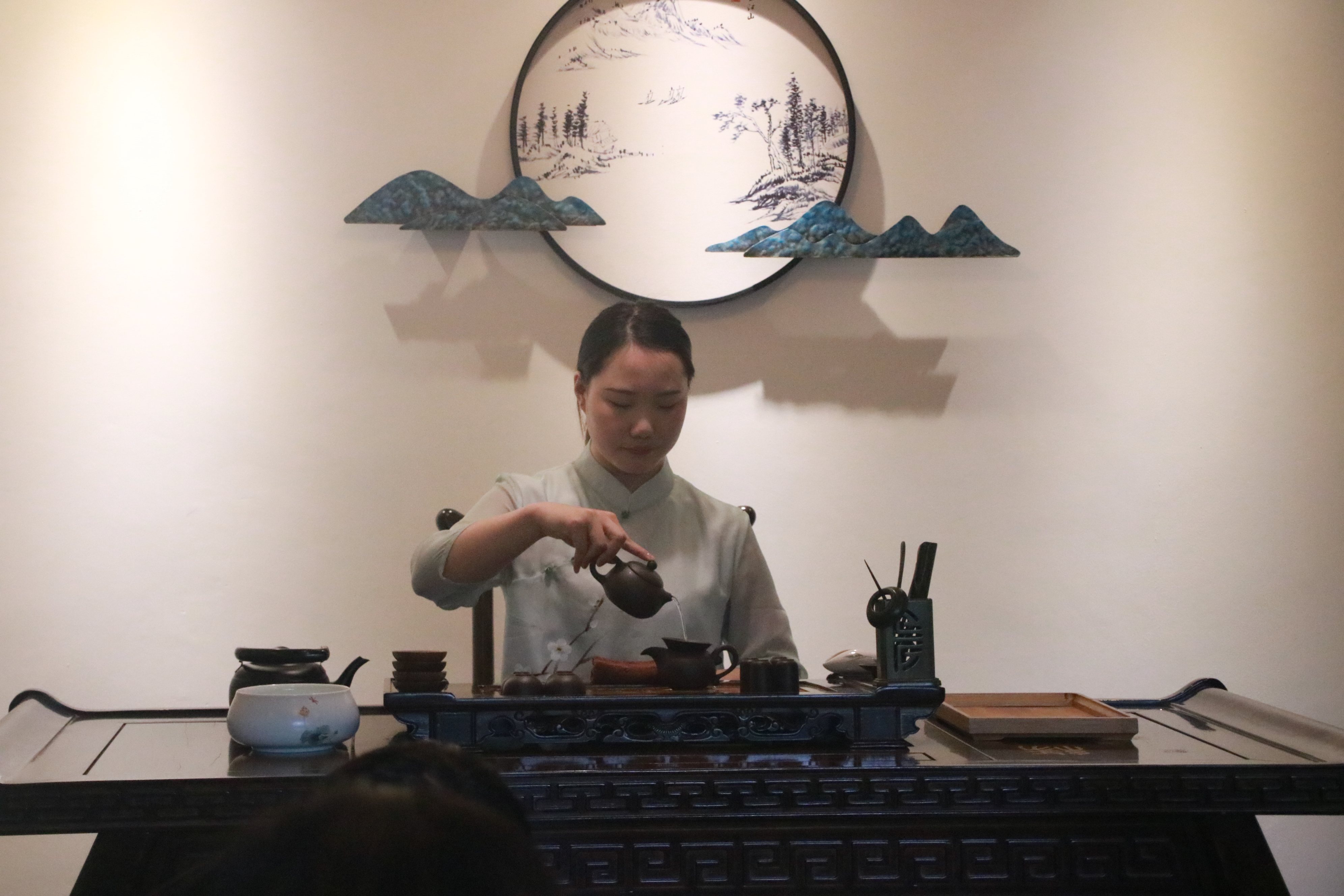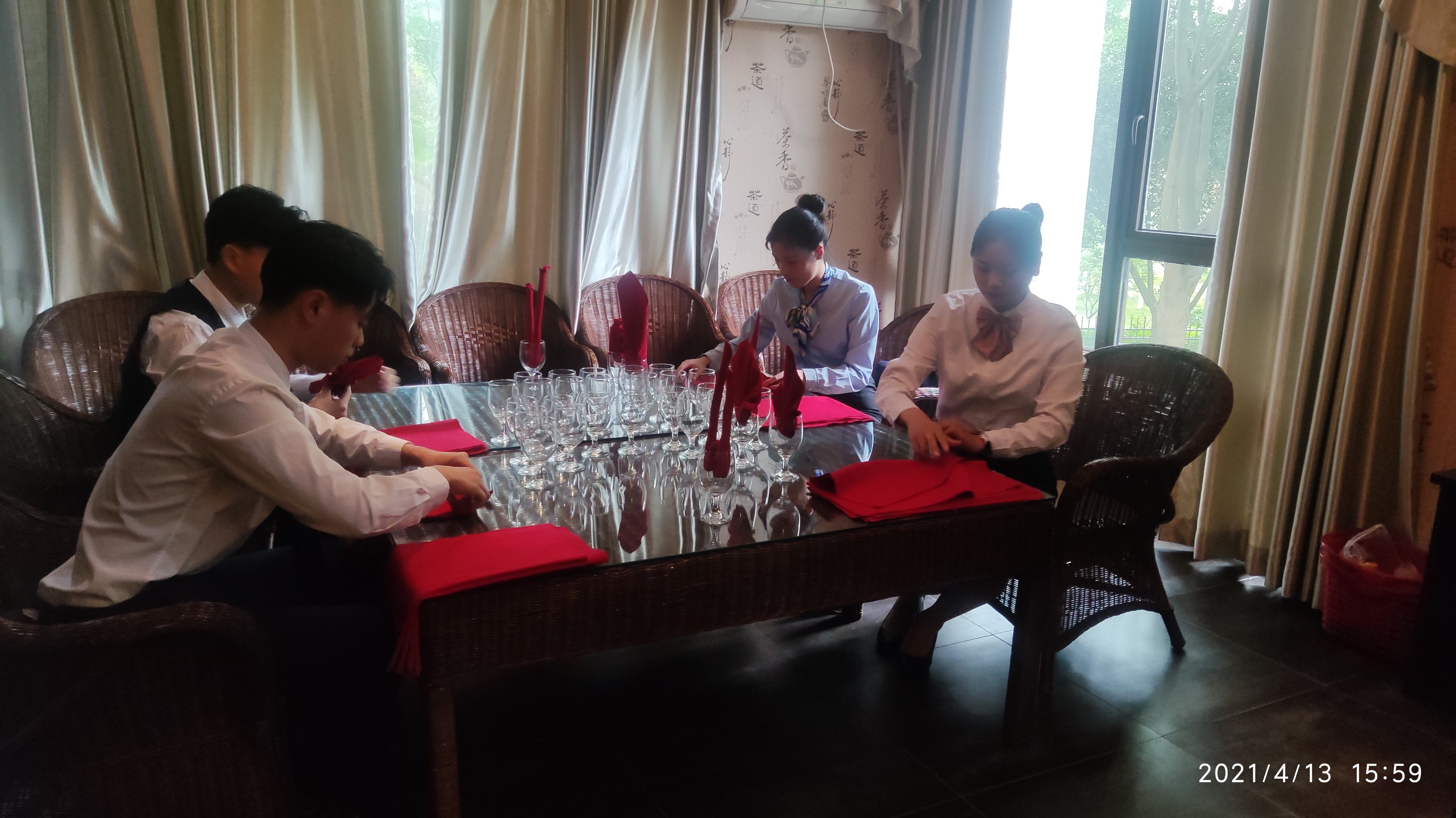 在文化与旅游学院酒店管理专业学生进行了茶艺、中餐折花的专业技能展演后,双方师生就专业合作及项目合作进行了“互动连线问答”。