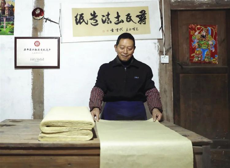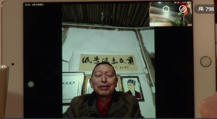 直播伊始,直播间师生与现场嘉宾一起欣赏了曾经家喻户晓的传统手工艺品——“糖人”。现场嘉宾蒋玉伟先生与直播间师生围绕当前传统手工品逐渐消失的原因展开了热烈讨论。接着,重庆市非物质文化遗产“土法造纸”技艺传承人蒋吉文老先生做客云端直播间。蒋吉文老先生向大家介绍了传承数百年的“土法造纸”技艺,例如“二元纸”名称的来历、“土法造纸”技艺的具体工序、“土法造纸”技艺的传承现状以及自己多年如一日的坚守。