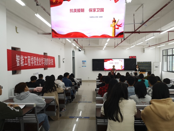 为扎实推进党史学习教育,使青年大学生铭记历史、致敬英雄,争做时代新人,以优异成绩庆祝中国共产党百年华诞,4月14日,智能工程学院邀请马克思主义学院四联系教师任甜甜作题为“抗美援朝 保家卫国”的讲座。学生党员、发展对象、入党积极分子、团学干部70余人在致用楼C106聆听讲座。