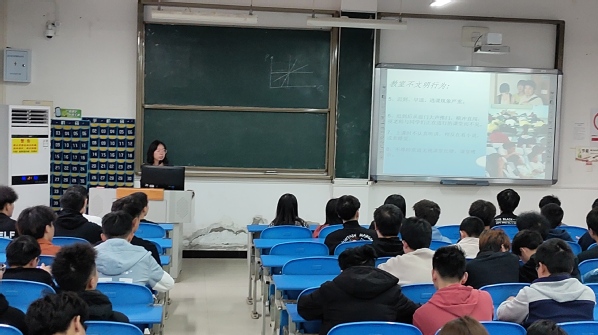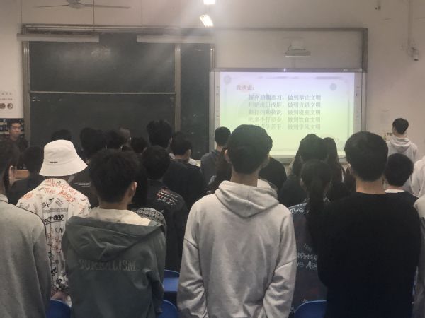 主题班会全员动员。学院辅导员开展了集体备课,制作了“文明新风,从我做起”的主题班会课件,重点围绕“校园不文明行为知多少、校园不文明行为整治重点、校园不文明行为专项整治工作安排、校园文明行为养成从我做起”四个方面召开主题班会进行讲解,还设置了集体宣誓环节,强化学生的参与感和责任感。