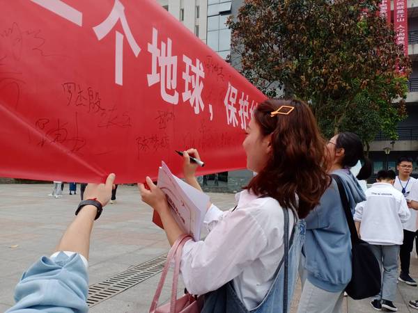 活动现场,志愿者通过发放宣传材料,向同学们介绍“世界地球日”的由来,并详细的讲解地球面临的重要环境问题。同时,通过“保护地球 你我同行”有奖知识竞答活动提高同学们的参与积极性,加深同学们对地球环境保护、节约资源的认识和理解。现场师生还共同签署了“低碳生活”倡议书,呼吁同学们积极行动起来,从自我做起,从身边小事做起,以实际行动响应保护环境的号召。