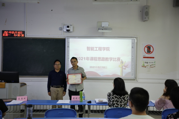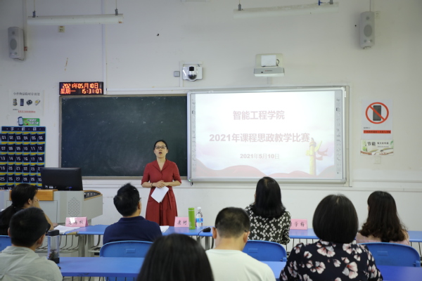 为全面贯彻全国高校思想政治工作会议精神,深入落实教育部《高等学校课程思政建设指导纲要》和全国职业教育大会精神,落实立德树人根本任务,进一步加强课程思政课堂教学实践,5月11日,智能工程学院在敏学楼B613举行了2021年课程思政教学比赛,各专业教研室遴选出6名教师代表参加此次比赛。比赛由智能工程学院教学事务办公室主任刘昕露主持,教学督导康树元教授、教务处陶学梅副处长、马克思主义学院四联系老师高再秋以及智慧康养学院专任教师聂麟懿应邀担任评委。