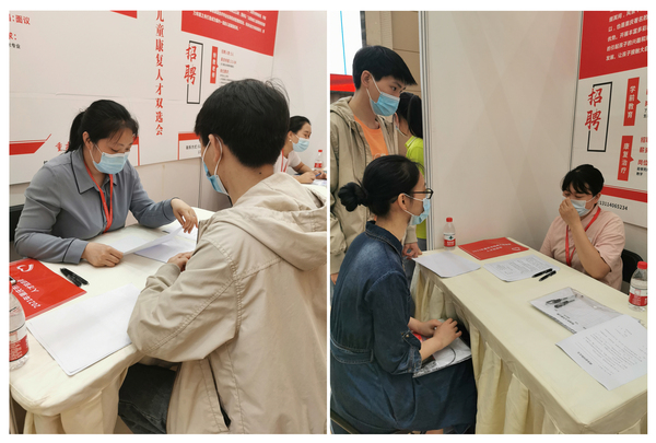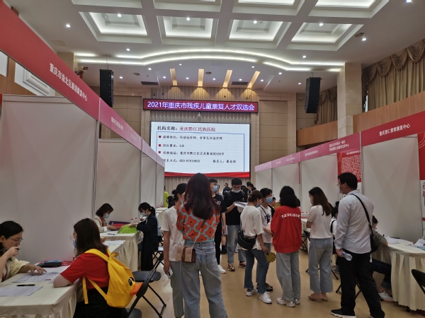 康复治疗技术专业42名即将毕业的学生还参与了当天的双选会活动。双选会上,58家重庆市残疾儿童康复机构提供了10余类工种370个岗位,部分康复机构与毕业学生达成了就业意向,近30名康复治疗技术专业学生与就业方现场签订了就业意向书。