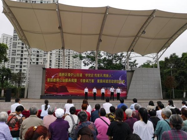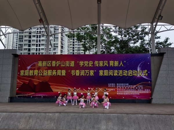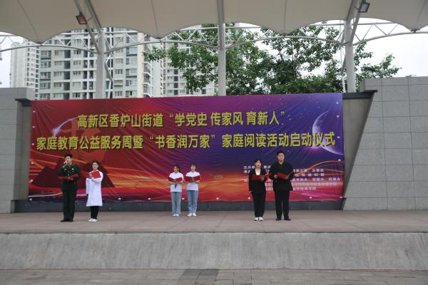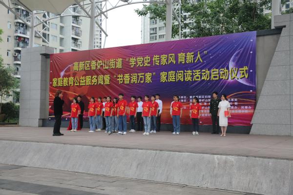 5月14日,在重庆高新区妇联的支持下,我校民政与社会治理学院、商学院联合高新区香炉山街道党工委、办事处,高新区香炉山街道妇联举办的“学党史·传家风·育新人”家庭教育公益服务周暨“书香润万家”家庭阅读活动启动仪式在康城广场举行。本次活动旨在讲好红色故事、传承红色基因,唱响共产党好、社会主义好,弘扬优良传统,倡导文明家风,引导家长树立正确的育人观、成长观,激发爱党爱国情感。