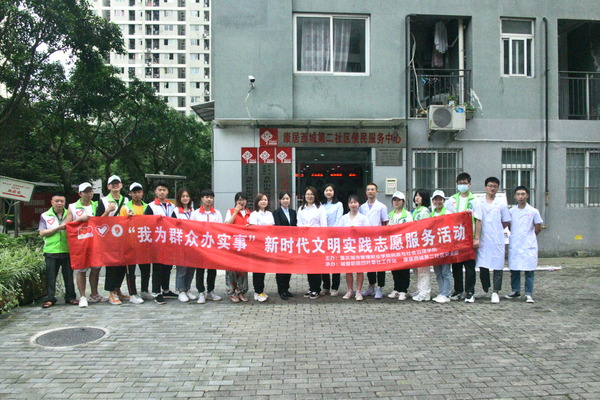 为扎实开展党史学习教育,落实习近平总书记“学党史、悟思想、办实事、开新局”要求,5月18日,由民政与社会治理学院主办,四叶草社工站、康居西城第二社区党支部承办,智慧康养学院党总支、智能工程学院党总支、安全管理处、物业专业党支部、重庆好德医院协办的“我为群众办实事”新时代文明实践志愿服务活动在康居西城第二社区开展,受益群众累计300余人次。