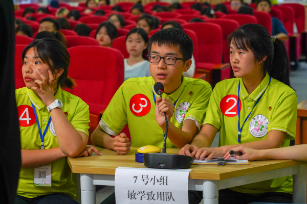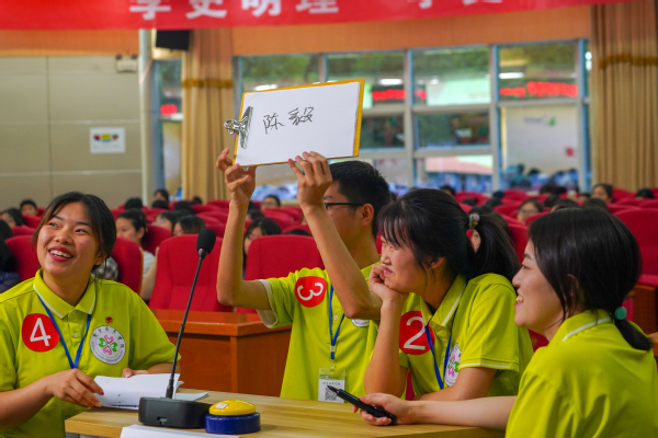 此次知识竞赛围绕《中国共产党简史》《论中国共产党历史》《习近平新时代中国特色社会主义思想学习问答》、习近平总书记关于“学党史、悟思想、办实事、开新局”学习教育系列重要讲话等有关内容展开,共分为“必答题、团队答题、风险题”三个环节,来自7个二级学院的代表队参加了比赛。选手们激情满满,你追我赶,比赛现场气氛活跃而紧张、场面精彩纷呈。必答题环节,选手们准备充分,沉着作答;团队答题环节,选手们齐心协力,反应迅速,既体现了充足的党史知识储备,又展现出了团队的协作能力;风险题环节,比赛节奏陡然加剧,选手们认真听题,积极思考,频频按下抢答器,场面十分热烈。在三个小组分数相同的情况下使得比赛进入加赛环节,助推本次知识竞赛活动步入高潮。