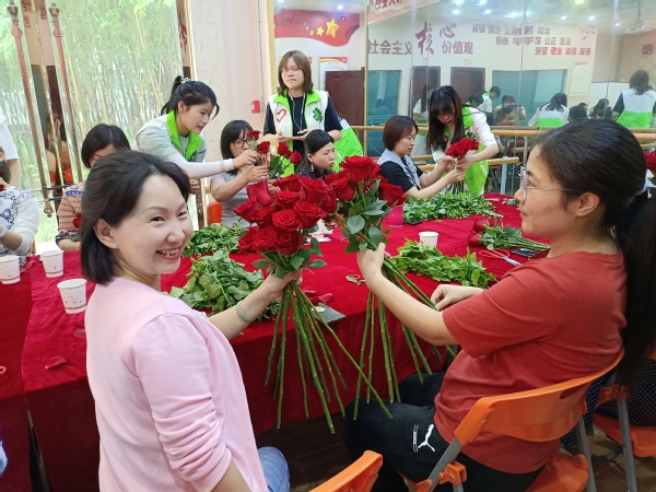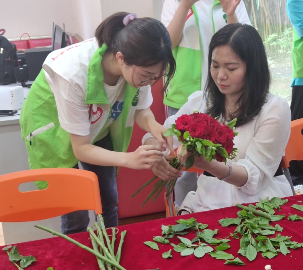民政与社会治理学院的学生入党积极分子也作为志愿者参与了本次活动。活动准备期间,余长惠等专业老师就如何完成花艺作品、如何与服务对象进行良好沟通等对志愿者进行了培训。当天的活动中,志愿者指导老师们完成作品。通过活动的参与,学生们的实践能力、审美能力、沟通与团队协作能力都得到了锻炼和提升。