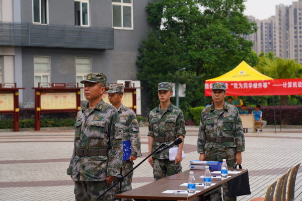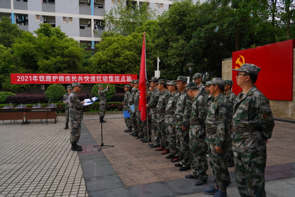 全体参加人员首先奏唱《中国人民解放军军歌》。随后,民兵连连长肖博耀宣读了民兵干部骨干任职命令和出入队人员名单,组织全体民兵庄严宣誓,指导员陈鹏代表新入队民兵进行了表态发言。沙坪坝区人民武装部副部长毛斌代表区人武部进行了现场点评,他强调全体基干民兵平时要加强各项军事训练,战时才能够发挥出民兵后备力量的作用,只有军事”拳头“过硬,才能确保战时队伍拉得出、打得赢。